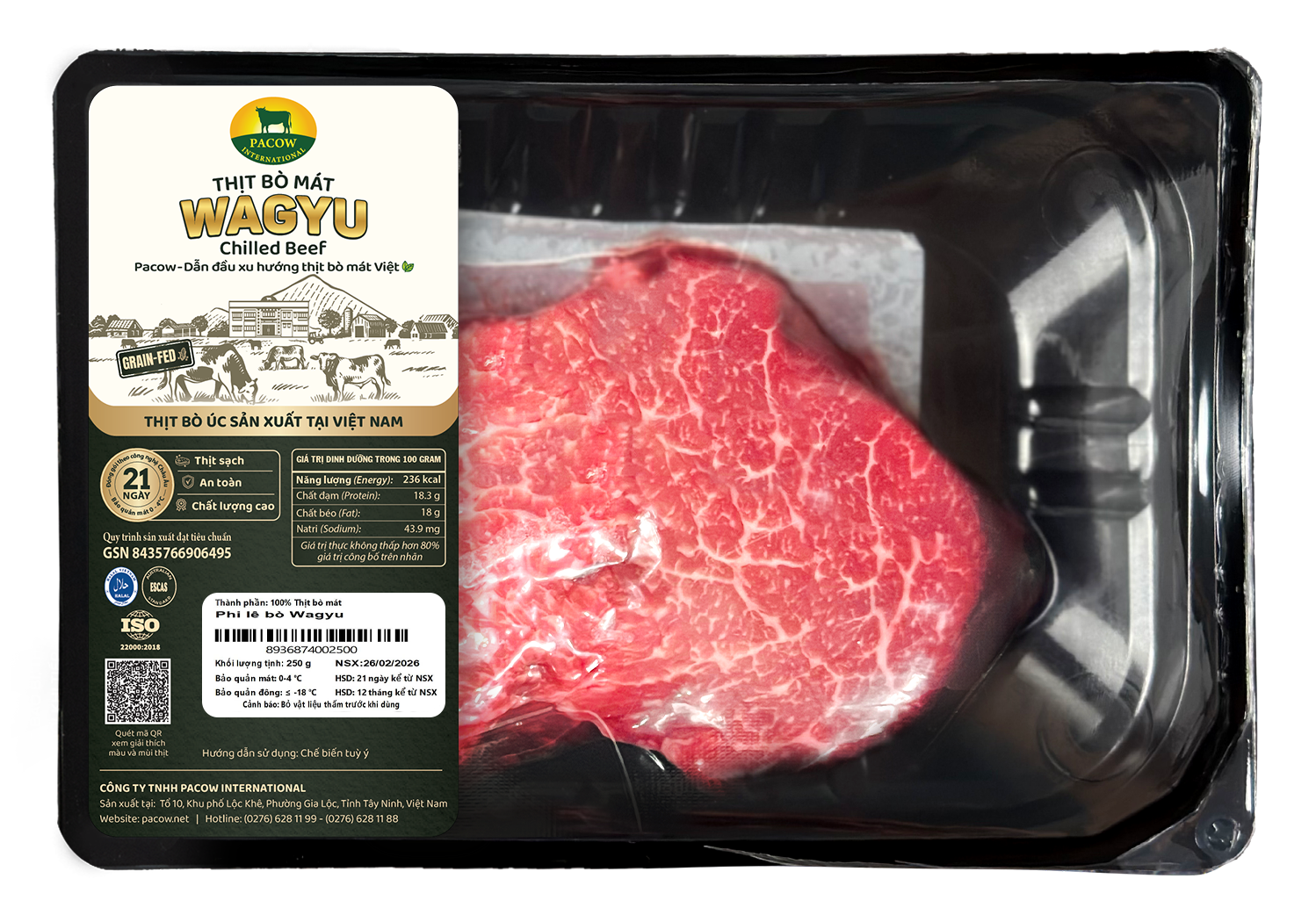 - Bao bì hút chân không, giúp bảo vệ thịt bò Wagyu tươi ngon bổ dưỡng trong suốt 21 ngày (ở nhiệt độ mát từ 0-4 độ C). Bảo quản đông ≤ -18 độ C.