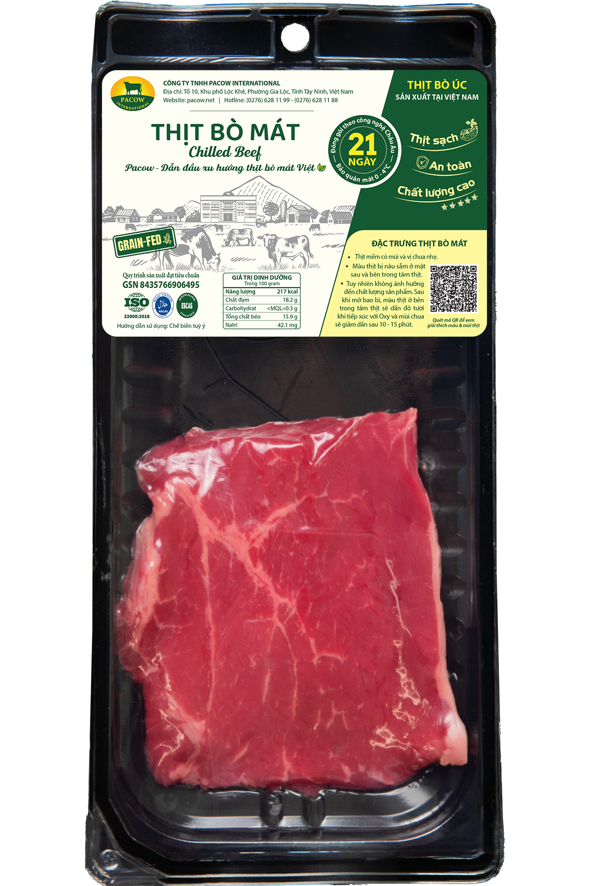 Bao bì được đóng gói hút chân không theo công nghệ tiên tiến với 2 lớp màng bảo vệ (giúp tách oxi ra khỏi sản phẩm nhằm ngăn chặn sự phát triển của các vi sinh vật), giúp thịt được bảo quản lên đến 21 ngày (ở nhiệt độ 0-4 độ C).