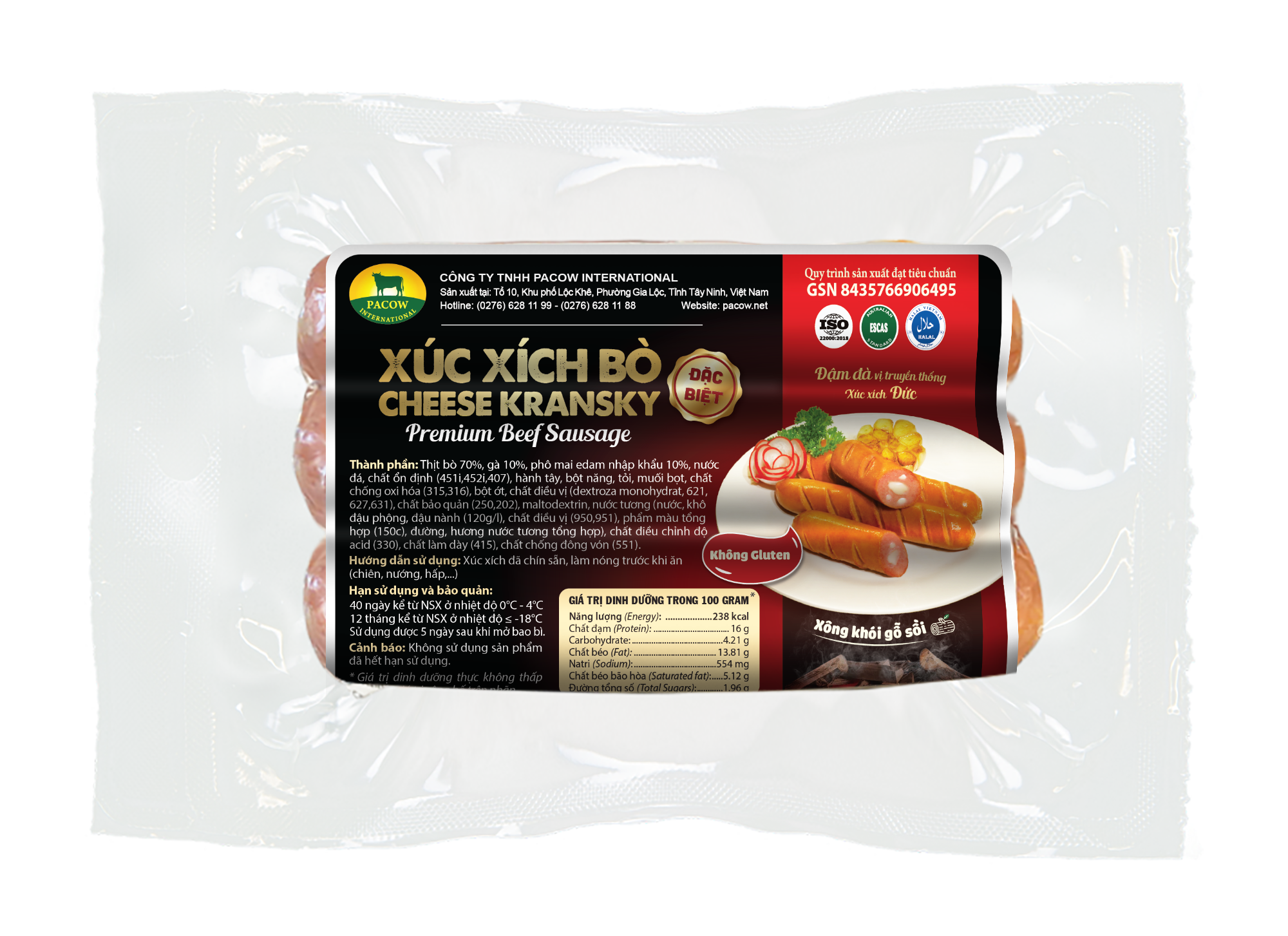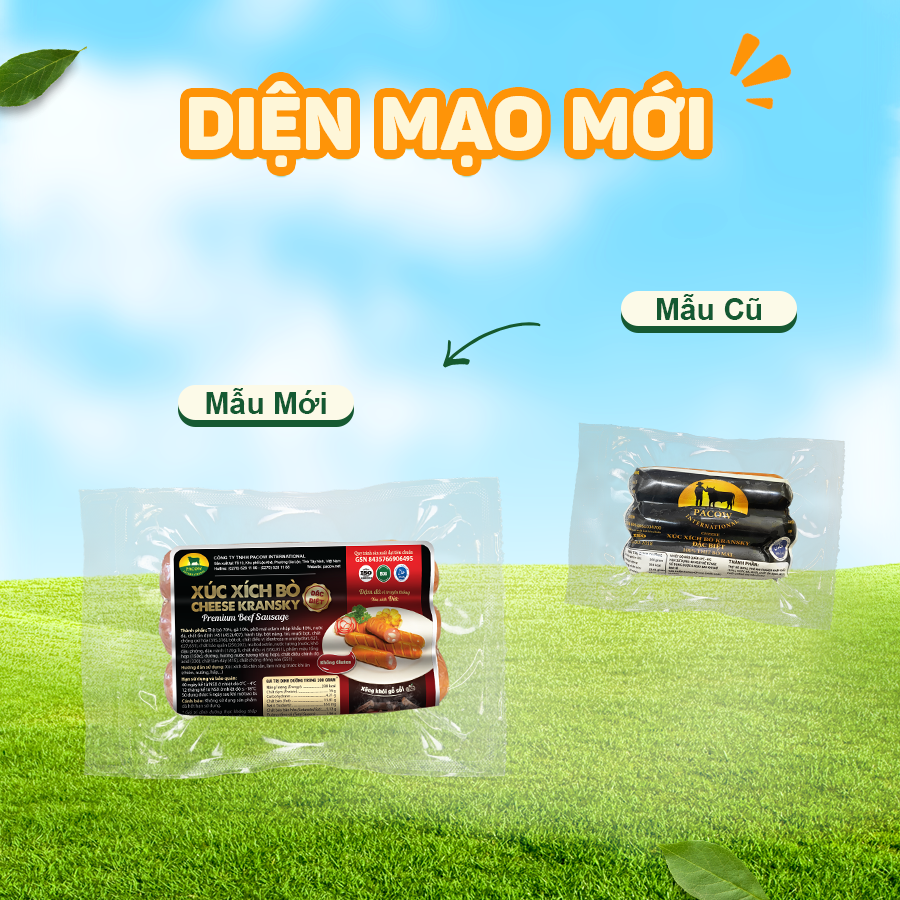 XÚC XÍCH BÒ KRANSKY ĐẶC BIỆT PACOW 200G được sản xuất từ 85% thịt bò mát Pacow (ở các sản phẩm xúc xích thông thường, tỉ lệ thịt bò chỉ chiếm 35-45%) & 15% gia vị khác.