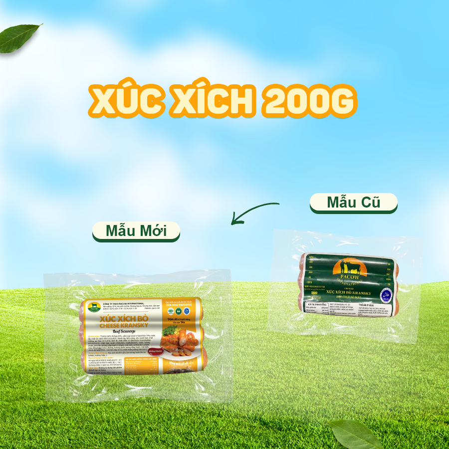 XÚC XÍCH BÒ KRANSKY PACOW 200G được sản xuất từ 60% thịt bò mát Pacow, 25% thịt gà (ở các sản phẩm xúc xích thông thường, tỉ lệ thịt bò chỉ chiếm 35-45%) & 15% gia vị khác.